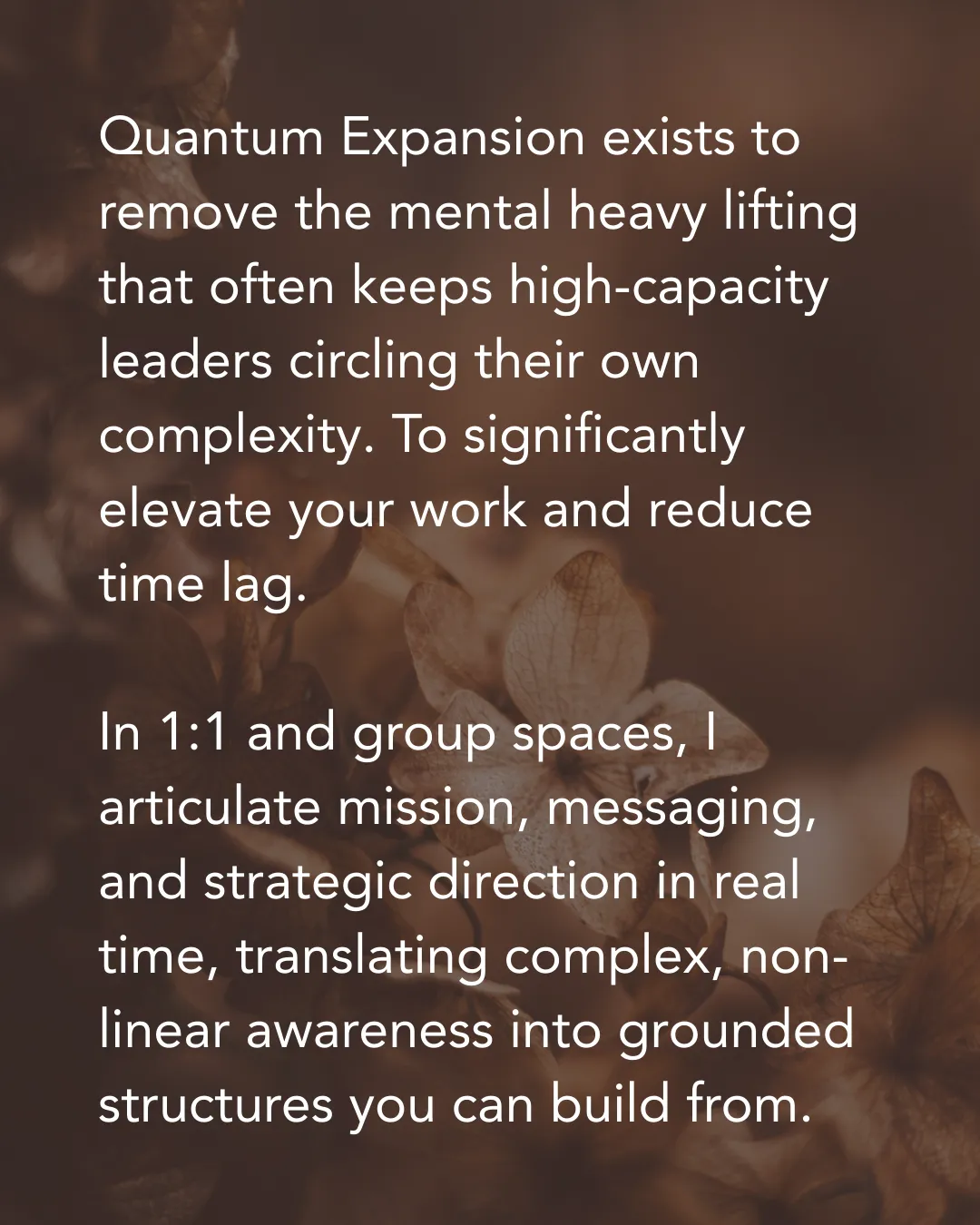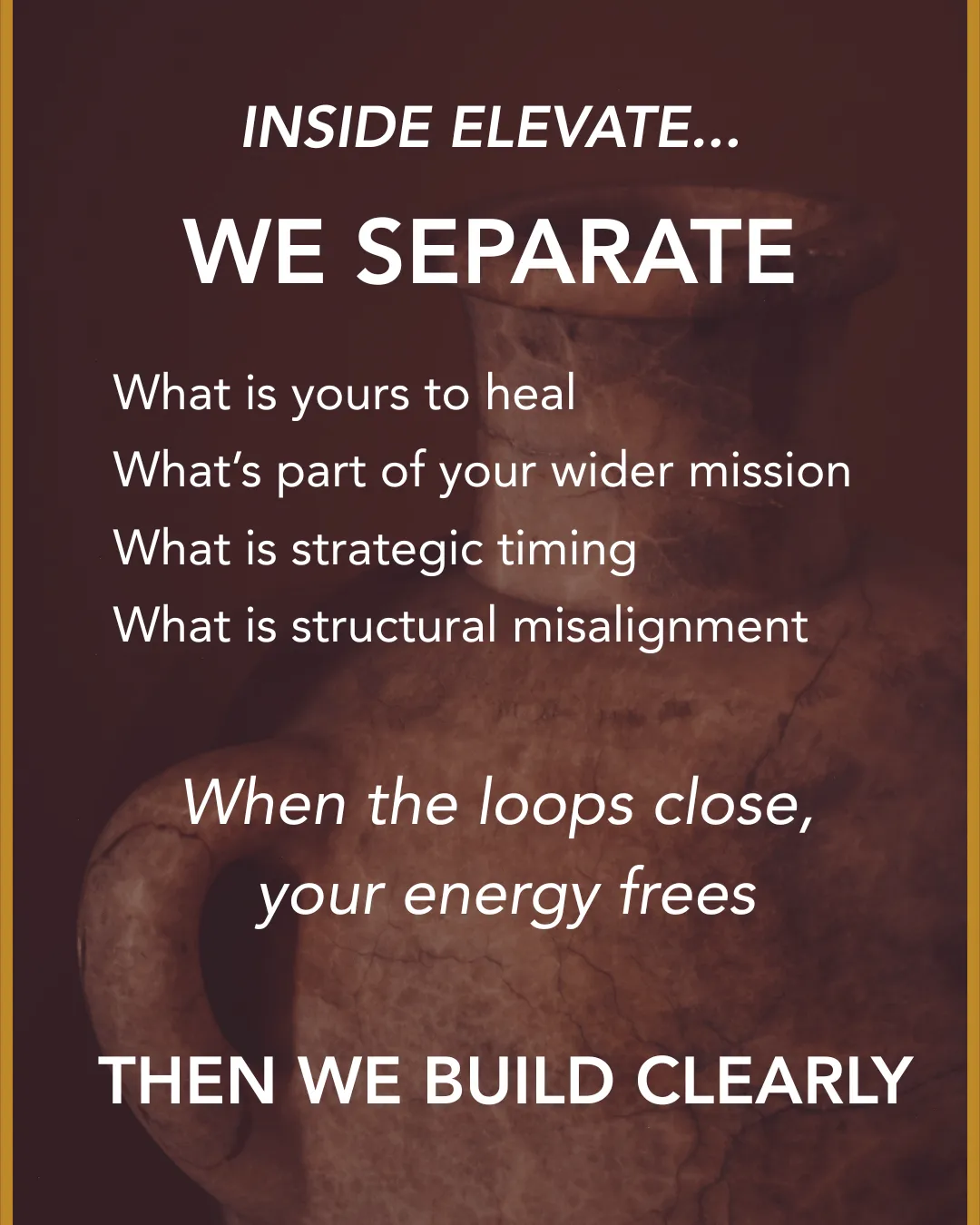 Elevate is a 12-month container for high-capacity leaders whose work is not being perceived at its true level. This is for long-range leadership stabilisation.