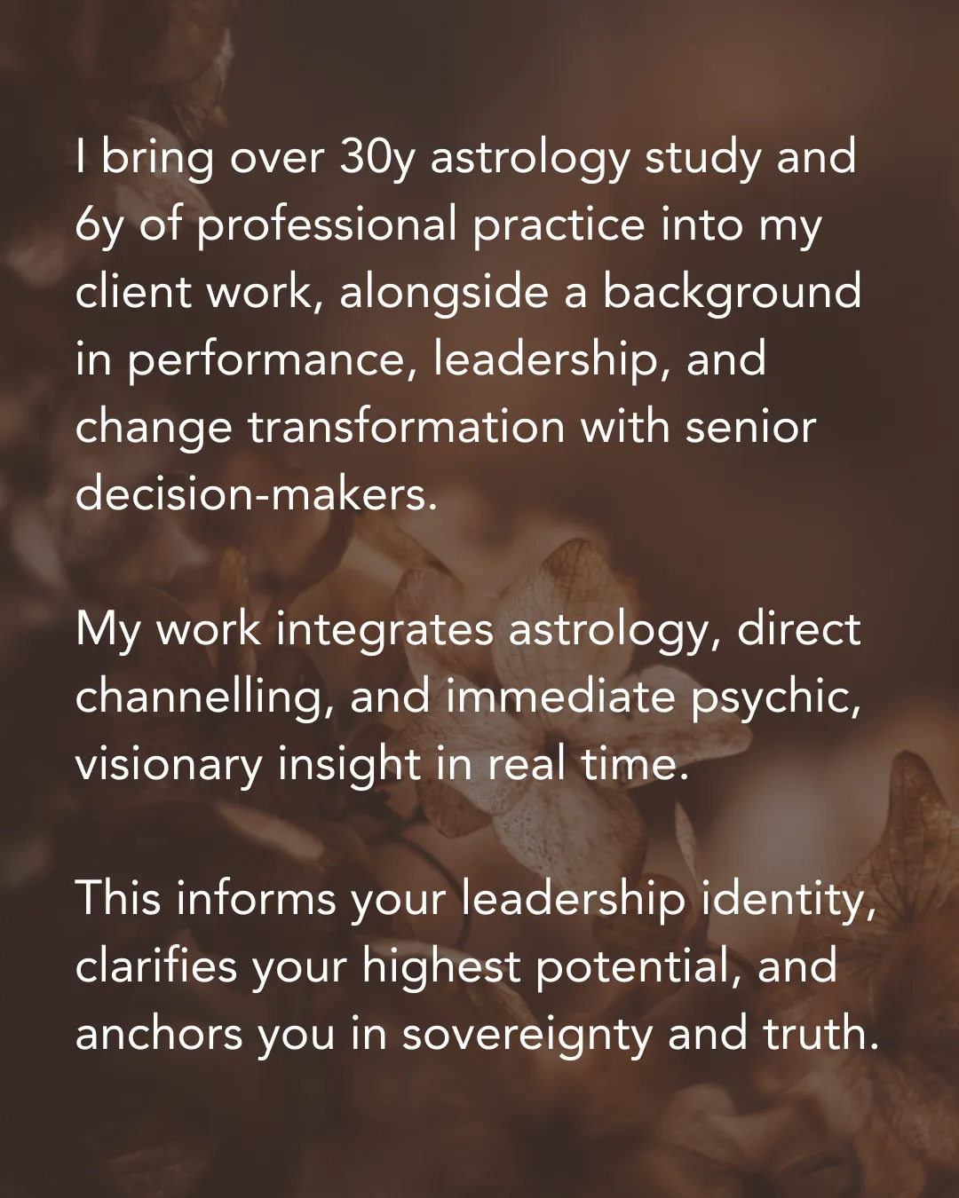 Six years professional practice articulating complex consciousness patterns through natal and predictive astrology.